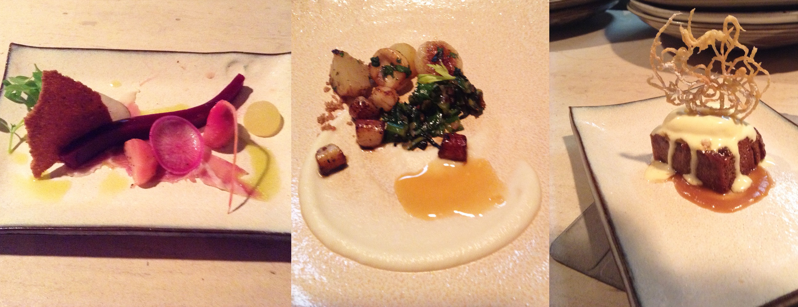 That love came in the form of a beautiful beet salad, sautéed scallops with mushrooms, greens and Jerusalem artichoke sauce, pasta stuffed with foraged pine needles, roasted duck breast and cake with a funnel cake-like garnish.