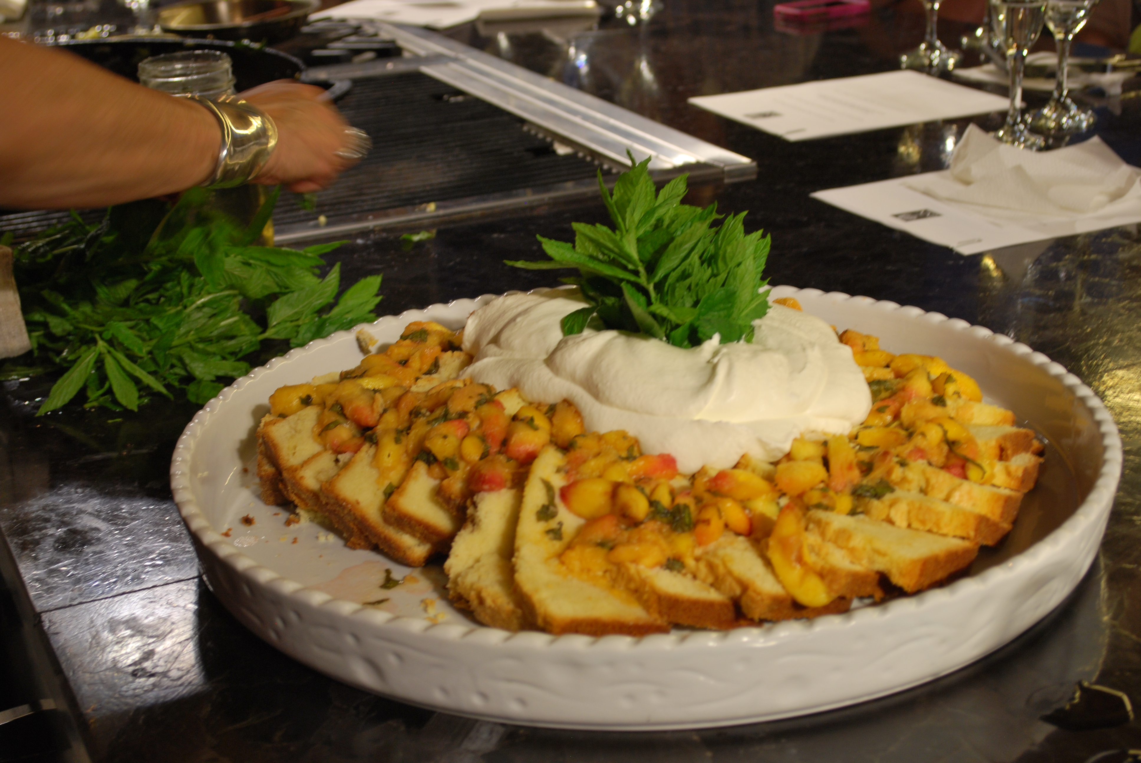 Sour Cream Pound Cake with Peaches, Mint and Ginger