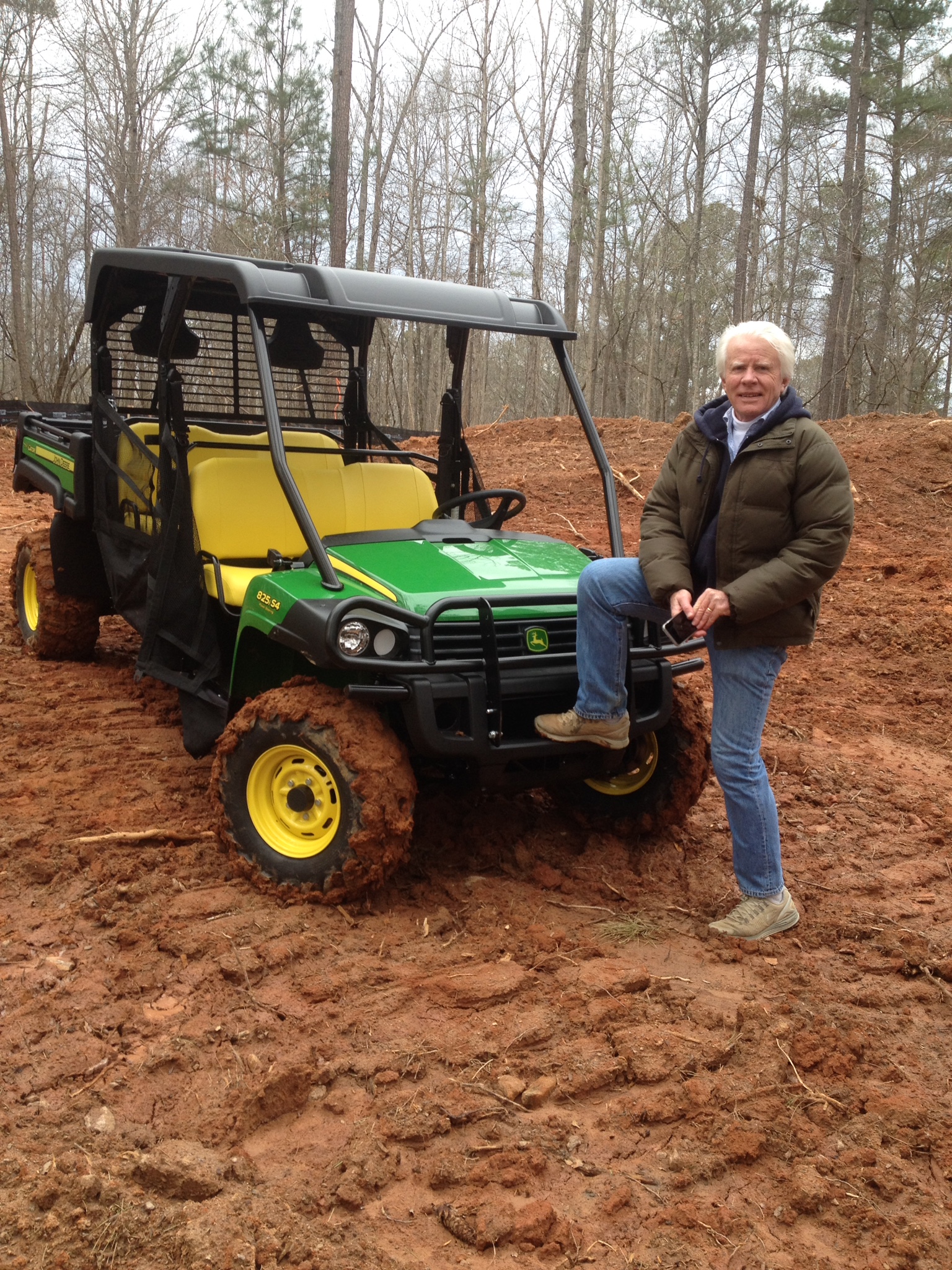 Normally Steve would take his car up there to check on construction and the sales team could show off its progress via electric golf cart. But neither of those are tough enough to navigate well in all the mud, new roads and natural roadblocks like, you know, giant tree limbs.